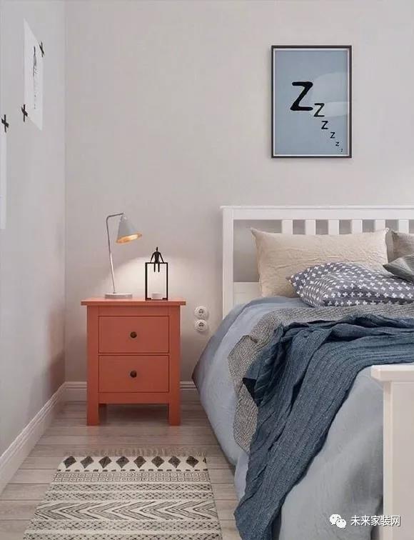 角落里放上一张红色的床头柜,装扮空间的同时也给生活一丝惊喜。